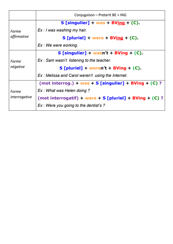 Le PRETERIT BE + V-ING en anglais