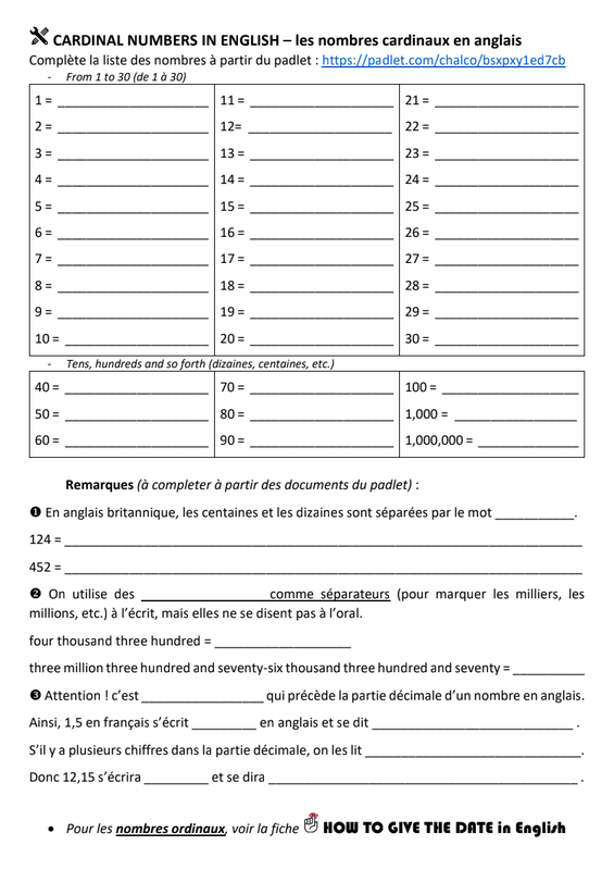 Pour t'entraîner avec les nombres, tu peux faire les activités proposées dans la 5ème colonne.
